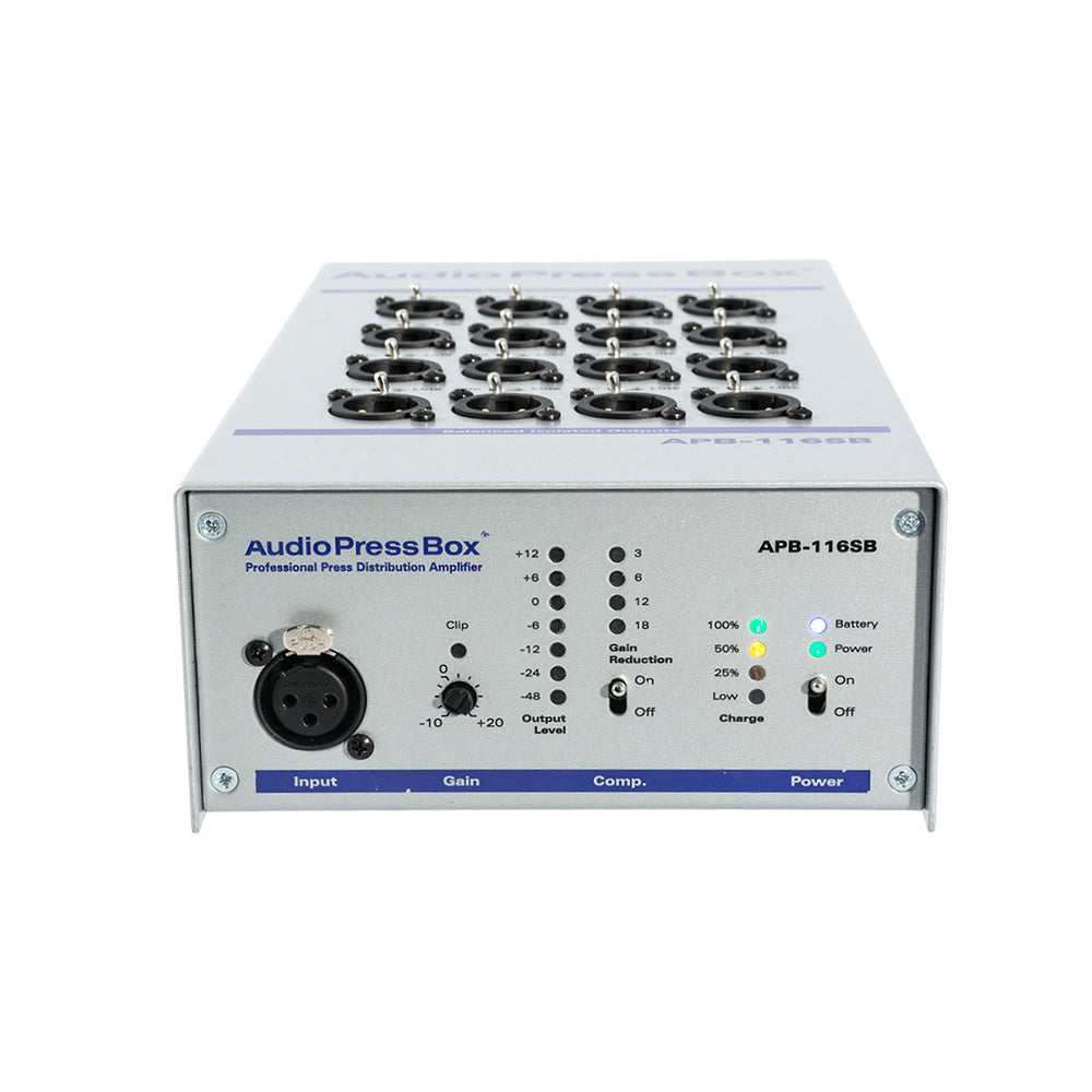 | Indicators | Input clip, Output level, Gain reduction, Power, Battery status | |