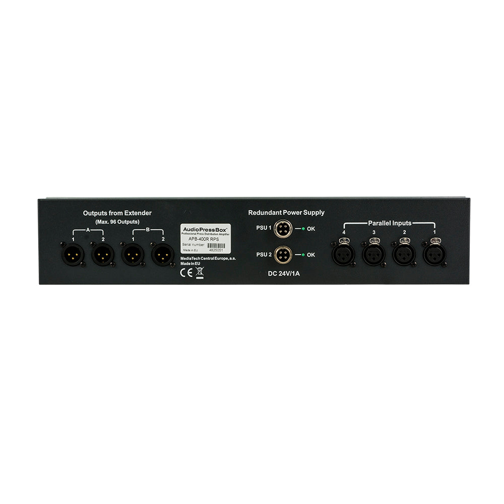 Rack design input module with 4 routable Inputs (A, A+B, B), 4 buffered outputs for APB expanders, Redundant Power Supply
